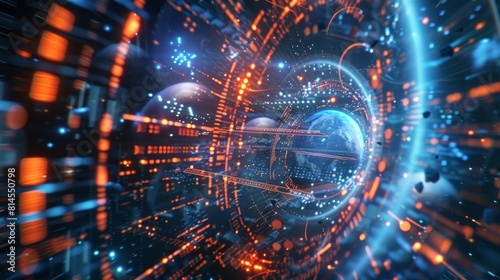 © Антон Сальников, Obraz premium Astronauts traveling through space, exploring the universe, studying constellations and nebulas. Comets in outer space reach the planet.