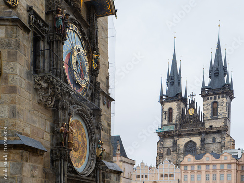 Obraz premium Astronomical Clock and Tyn Church in Prague Old Town