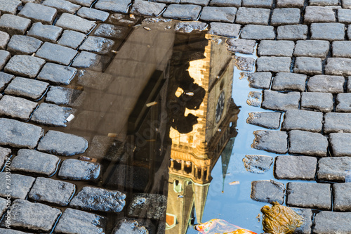 © Vivida Photo PC, Fototapeta premium Astronomical clock in Prague in puddle