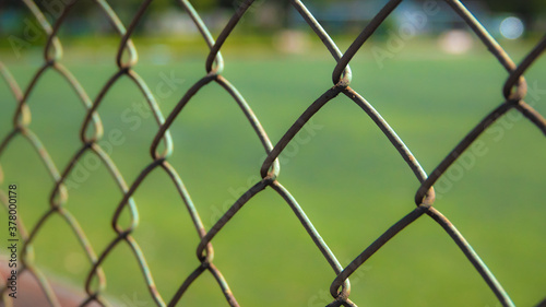 Fototapeta premium Astroturf corner surrounded by iron wires