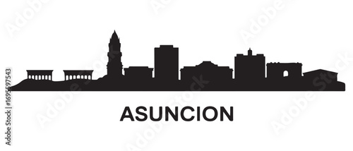 © Nargis, Obraz premium Asuncion skyline silhouette. Black Asuncion city design. Vector black silhouette. with white background