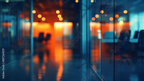 Fototapeta premium at night beautiful Abstract blurred office interior room blurry working space...