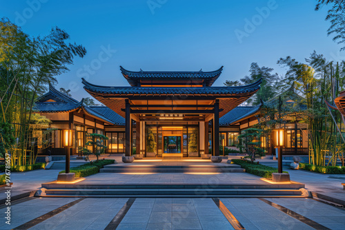 © fanjianhua, Naklejka premium At night, the gatehouse of a residential community