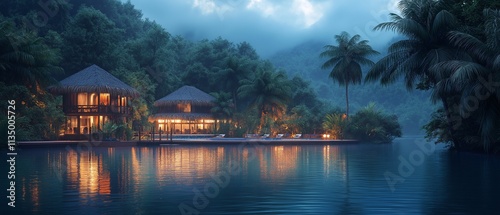 © tongpatong, Fototapeta premium At night, the Lagoon's tropical resort