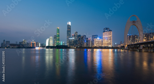 Naklejka premium At sunset, Guangzhou Zhujiang New City Skyline