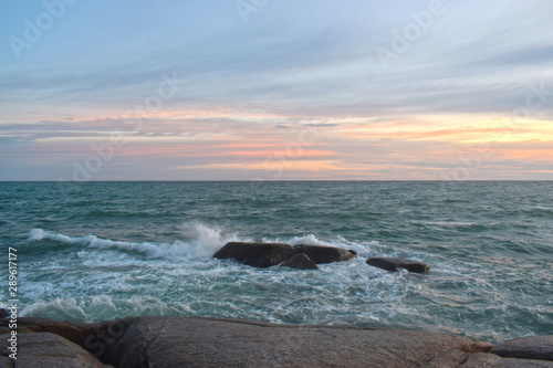 Obraz premium At the beach During the setting sun The wind blows cool. Beautiful clouds and...