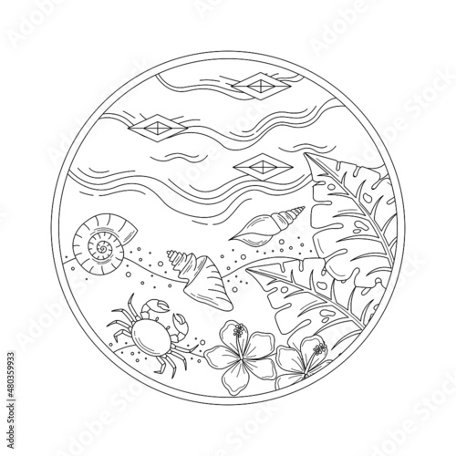 © Desain anak palu, Fototapeta premium at the beach illustration in outline or doodle style