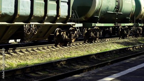 Naklejka premium At the railway station there are cars and tanks of a freight train