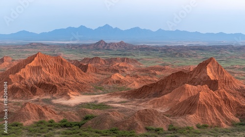 © Big9869, Naklejka premium Atacama Desert's Red Rock Formations and Distant Mountains