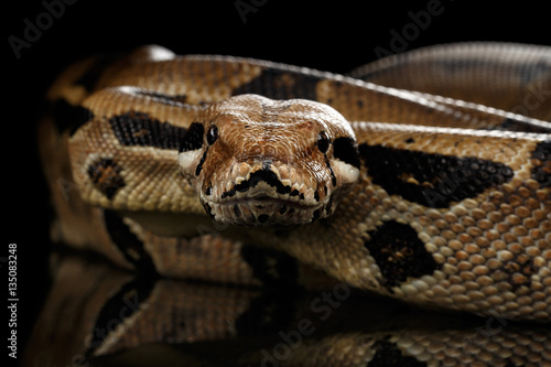 Obraz premium Atak Boa dusiciel wąż imperator kolor, na odosobnionym czarnym tle z odbiciem