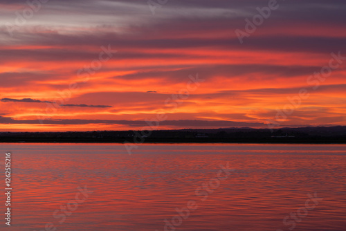 © Malia, Obraz premium Atardecer de colores vibrantes cerca del Río