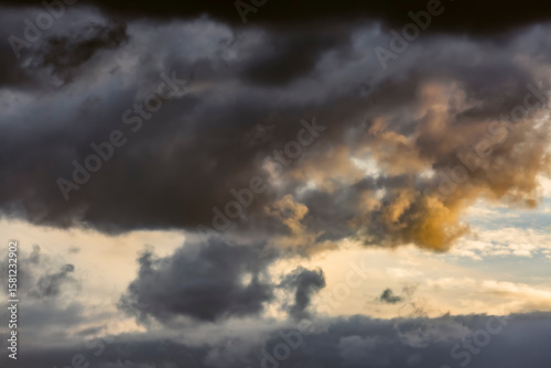 Obraz premium Atardecer dramático con nubes de diferentes formas y colores.
