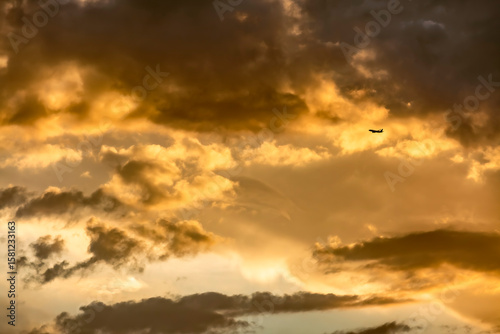 © Guillermo Aparicio S, Fototapeta premium Atardecer dramático con nubes de diferentes formas y colores.