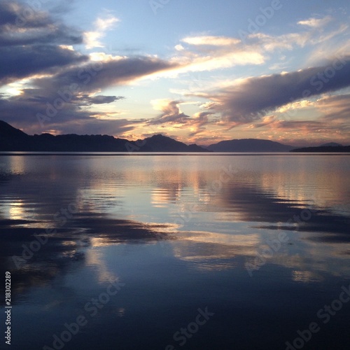 © Jorge, Fototapeta premium Atardecer lago calafquen reflejo