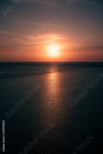 Obraz premium Atardecer sobre el mar, colores azul y naranja