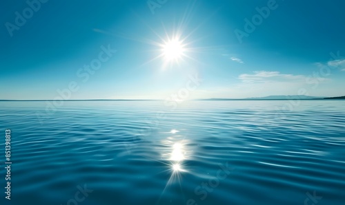 Obraz premium ater with a sun shining brightly on it The water is calm, Generative AI
