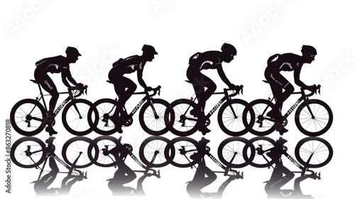 Fototapeta premium Athlete cyclists in silhouettes on transparent background