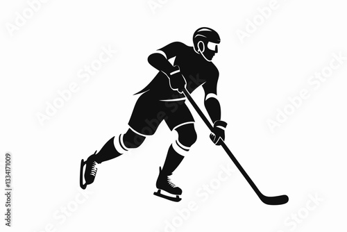 © Pinak, Obraz premium athlete hockey player minimalistic figure line art silhouette vector illustration