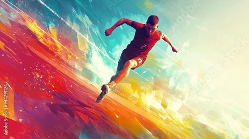 Naklejka premium Athlete Leaping Through a Colorful Abstract Landscape