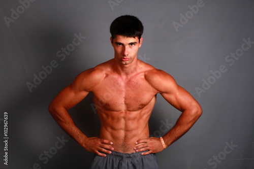 © olehslepchenko, Naklejka premium Athlete looks into the camera