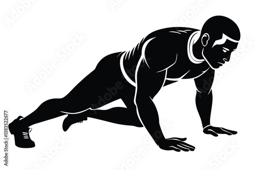Fototapeta premium Athletic African Man Pushup Silhouette, Sport Training