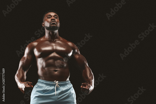 © Prostock-studio, Fototapeta premium Athletic african man showing naked muscular body