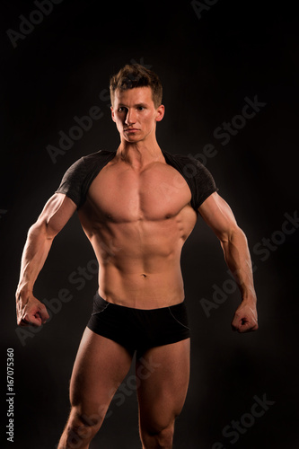 Fototapeta premium Athletic bodybuilder pose in pants.