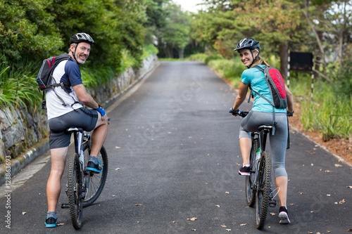 © WavebreakMediaMicro, Naklejka premium Athletic couple cycling on the open road