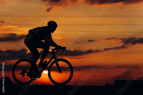 Obraz premium Athletic cyclist in silhouette racing on road