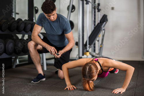 © nazarovsergey, Obraz premium athletic girl performs push-ups