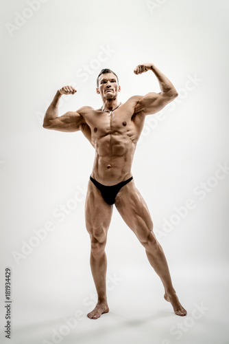 Fototapeta premium athletic guy - bodybuilder, pose on white background