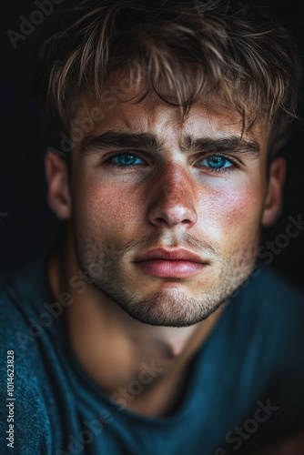 © BrandwayArt, Fototapeta premium Athletic handsome man with striking blue eyes in a close-up portrait