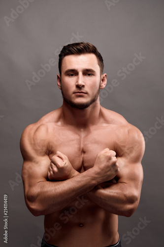 Fototapeta premium Athletic Man Fitness Model Torso showing big muscles.