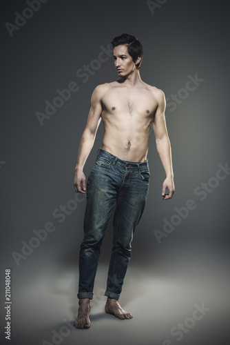 © Andrey Kiselev, Fototapeta premium athletic man in jeans