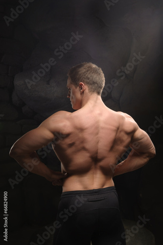 © zinkevych, Fototapeta premium Athletic man on black backgrounds