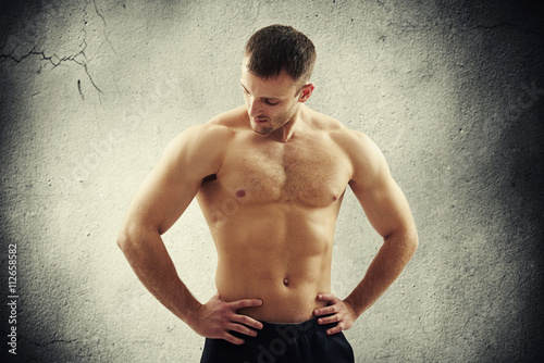 © ArtFamily, Obraz premium Athletic man with bare chest looking down