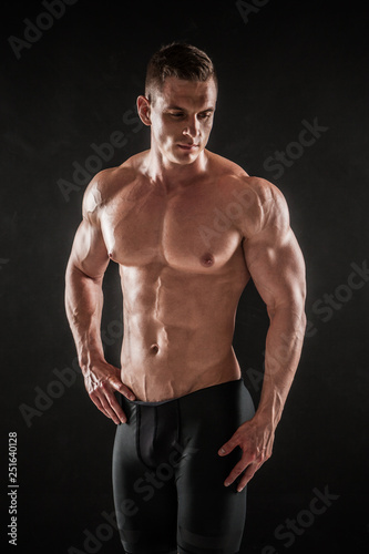 Fototapeta premium Athletic shirtless young male fitness model posing