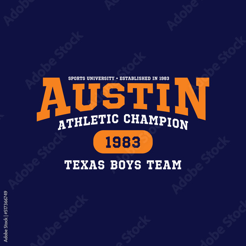 © Дмитрий Сальников, Fototapeta premium Athletic team state of Austin, Texas. Typography graphics for sportswear and apparel. Vector print design.