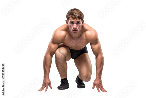© Bojan, Obraz premium Athletic Teen Wrestler Preparing for Match on Transparent Background