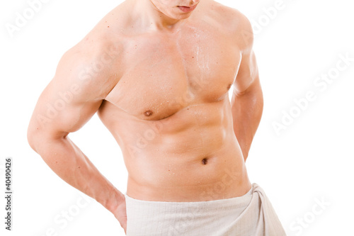Fototapeta premium athletic young man in towel, isolated on white