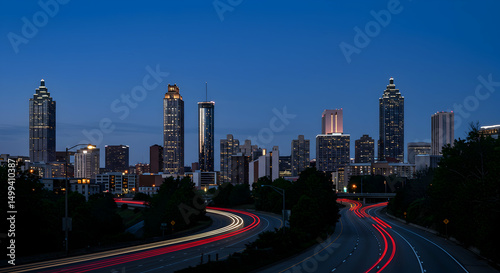 © sarinya, Fototapeta premium Atlanta, Georgia, Skyline, Atlanta Skyline at Dusk with Light Trails