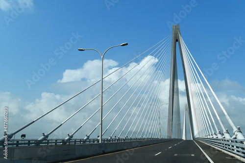 © Klara Bakalarova, Fototapeta premium Atlantic Bridge, entrance to the Panama Canal from the Atlantic Ocean, the third bridge has two pylons and is suspended, near the city of Colon