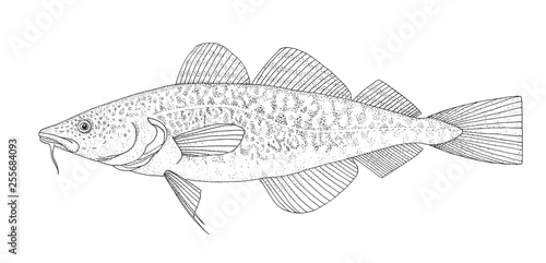 © Yaroslava, Obraz premium Atlantic cod. Hand drawn black image.