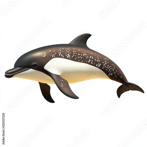 © kullapassorn, Fototapeta premium Atlantic spotted dolphin leaping, dark brown, white belly, spotted pattern.