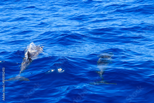 © olyasolodenko, Naklejka premium Atlantic spotted dolphin (Stenella frontalis), swimming in the Atlantic Ocean, Funchal, Madeira, Portugal