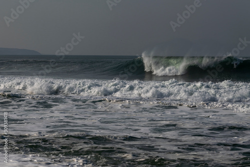 Fototapeta premium Atlantic waves on Nazare North beach, Portugal.