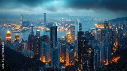 © Piyawat, Fototapeta premium atmosphere overlooking southern east Asia. you can see the well lit places of modern busy cities with lights and slow shutter photography