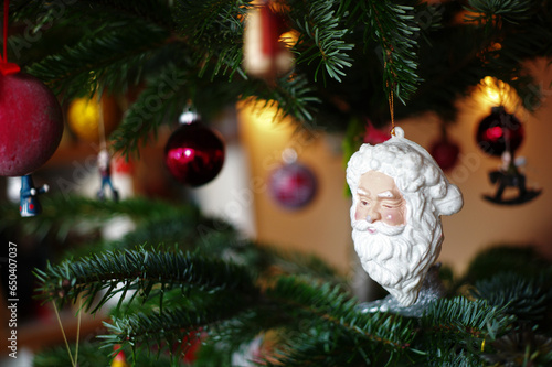Obraz premium Atmospheric Christmas tree decoration with Santa and balls