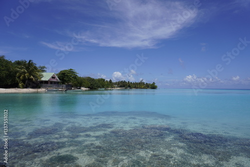 Fototapeta premium Atoll Hao in den Tuamotus. Blick auf den Hauptort.