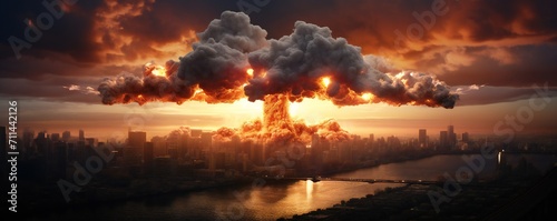 Fototapeta premium Atomic bomb explosion over a big city Generative Ai